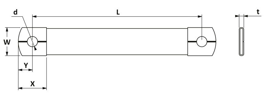 L [mm] | W [mm] | X [mm] | Y [mm] | d Ø [mm] | t [mm] | Order no. |